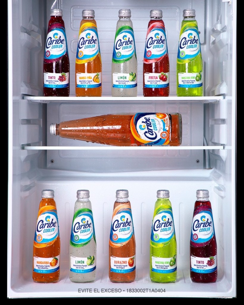 Caribe Cooler en presentaciones de 300ml, de 750ml para compartir o en lata, haciéndola súper práctica y perfecta para cualquier lugar y ocasión. Además, sus diversos sabores como: Durazno, Tinto, Fresa, Mango-Piña, Manzana-Kiwi y Mandarina, la hacen perfecta para todos los gustos.