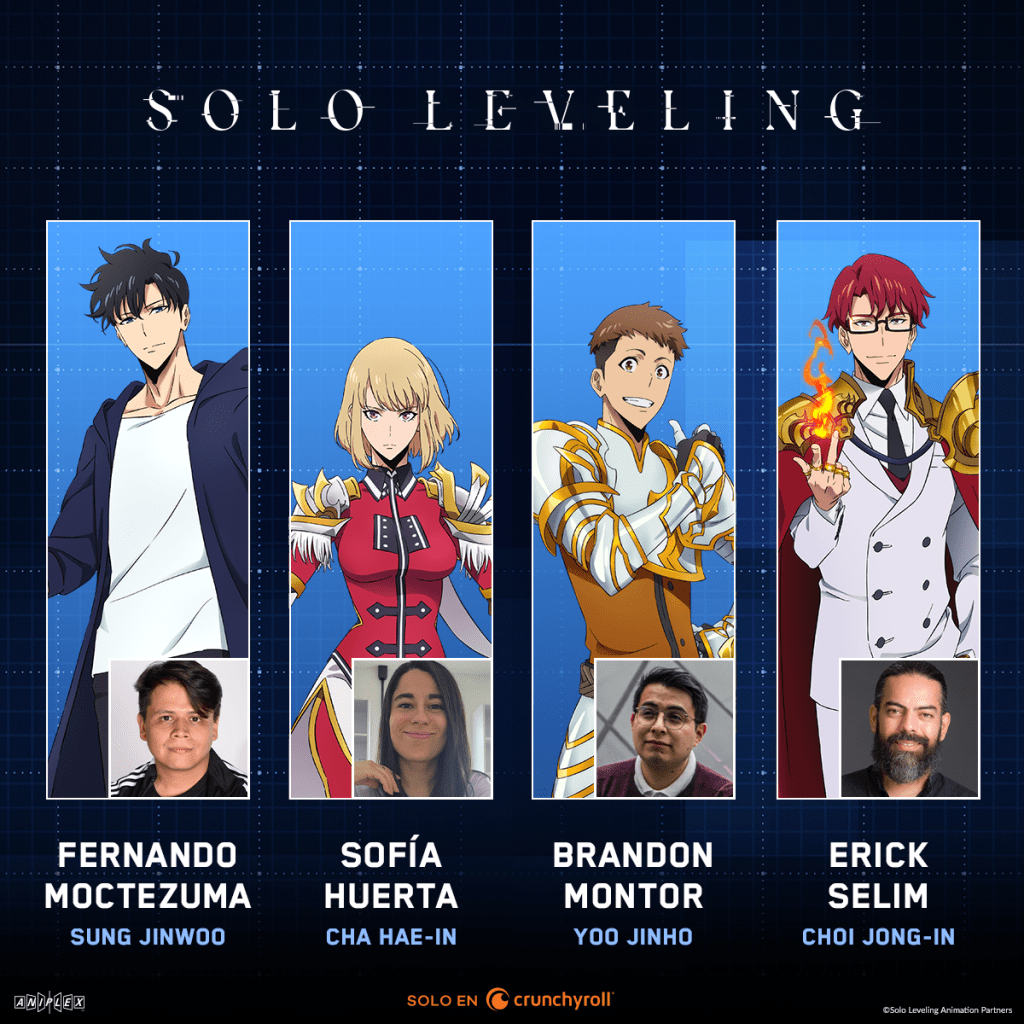 - Sung Jinwoo interpretado por Fernando Moctezuma Ulloa (Meneldor en The Faraway Paladin, Mizukiyo Minamikawa en Platinum End, Kumadori en One Piece)
