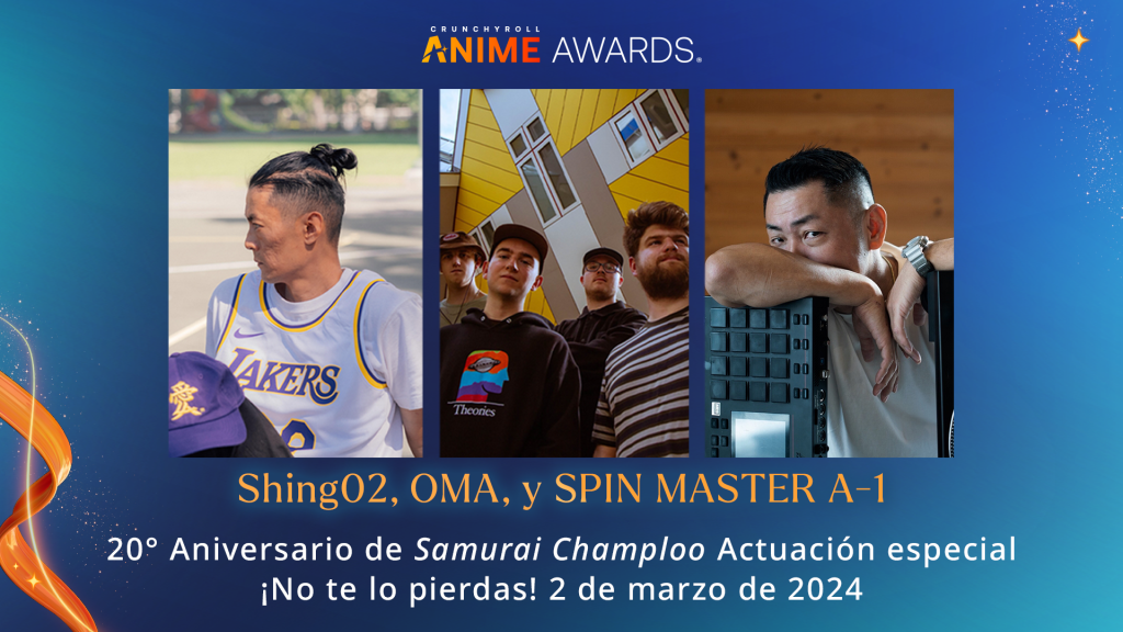 La música de los Anime Awards 2024 será una celebración de momentos clave de la historia del anime. En conmemoración del 20º aniversario de Samurai Champloo, Shing02, OMA y SPIN MASTER A-1 interpretarán la canción de apertura de la serie, «battlecry», en exclusiva para los espectadores de la transmisión en directo.