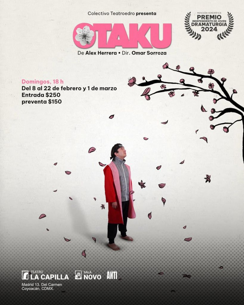 El colectivo Teatroedro se complace en anunciar la temporada de Otaku, un monólogo tragicómico escrito y protagonizado por Alex Herrera y dirigido por Omar Sorroza. Esta pieza, que recibió Mención Honorífica en el Premio Independiente de Joven Dramaturgia 2024 por parte de la Editorial TeatroSinParedes, explora la resiliencia y la trascendencia emocional frente a la pérdida.